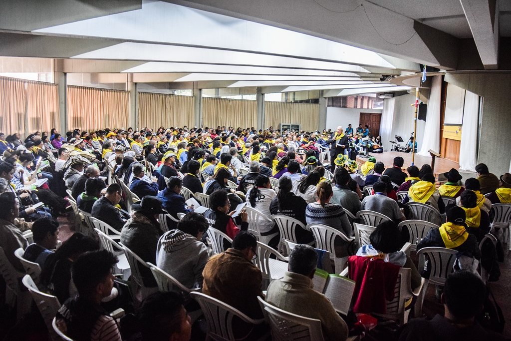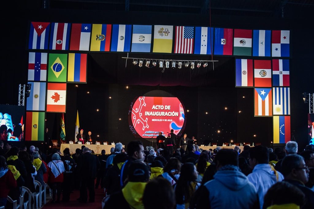 Essa consciência missionária transpareceu no entusiasmo com que se repetia o lema América em Missão, o Evangelho é alegria! Aclamado e cantado, refletiu-se depois tanto nas cinco Conferências dos Bispos e Padres convidados (parte da manhã), como nas Oficinas, Sub-Assembléias e Conversatórios (parte da tarde), onde se aprofundou a temática e os testemunhos. Como uma moldura geral, resplandecia a grande Cruz de madeira, réplica da que se encontra da Praça Principal das Missões de São Xavier, na localidade boliviana dos índios Chiquitos, evangelizados há 300 anos. Na Cruz Missionária estava incrustada a relíquia da Beata Nazária Ignácia, primeira religiosa a fundar uma congregação de Irmãs na Bolívia. Um exemplar dessa Cruz de 2 metros de altura fôra benta pelo Papa Francisco e enviada previamente a todas as Conferências Episcopais da América, e peregrinou pelo continente na preparação do Congresso.