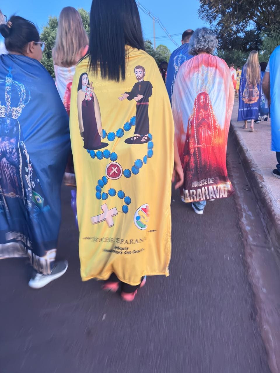 “Vi um jovem indígena usando um manto de Nossa Senhora de Guadalupe nas costas e imediatamente pensei em trazer essa ideia para nossas peregrinações. Em vez de camisetas, cada paróquia foi incentivada a confeccionar mantos com a imagem de seus padroeiros. Tem sido uma experiência belíssima e marcante”, compartilhou Dom Mário.