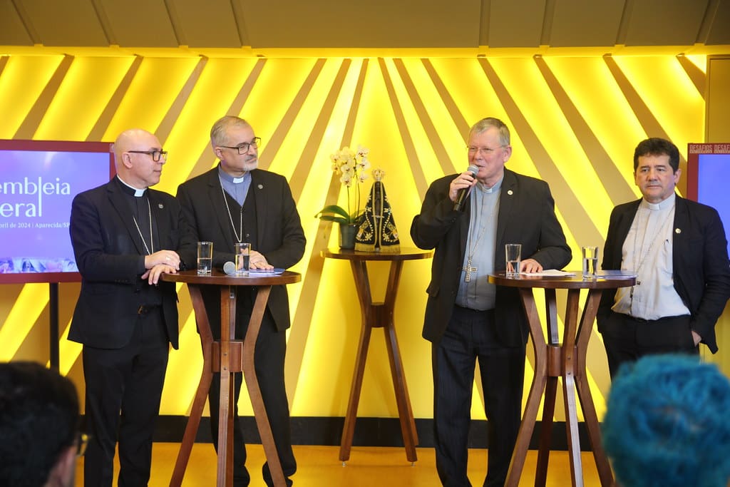 A Presidência da Conferência Nacional dos Bispos do Brasil (CNBB) protagonizou a coletiva de imprensa de encerramento da 61ª Assembleia Geral da CNBB, realizada em Aparecida (SP) de 10 a 19 de abril de 2024, com a participação de 442 bispos.